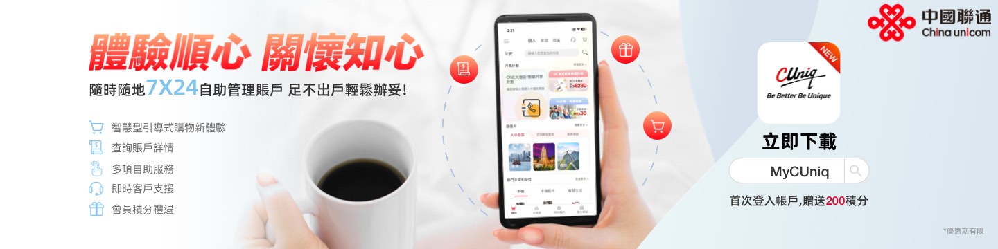 With the MyCUniq app, you can apply for a new monthly plan, enjoy 1-card-2-numbers with a premium number of 186-188X-XXXX, and purchase travel SIM cards, smartphones and accessories. What’s more? You can browse all member-exclusive benefits and contact customer services in the App!